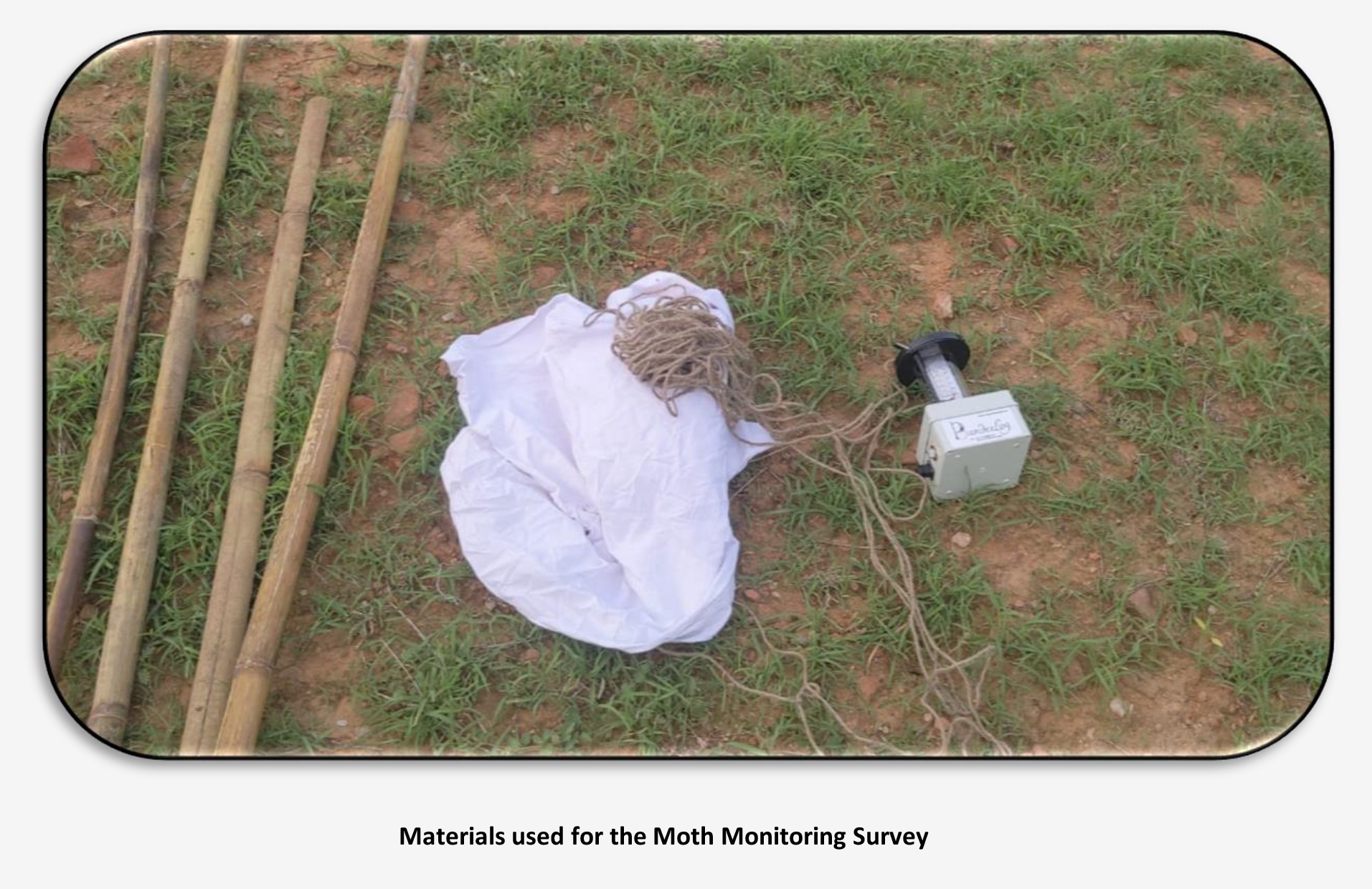 A bright white sheet was placed in the study area with a LepiLED light suspended above it. Moths attracted to the sheet were photographed and recorded using the citizen science platform iNaturalist.